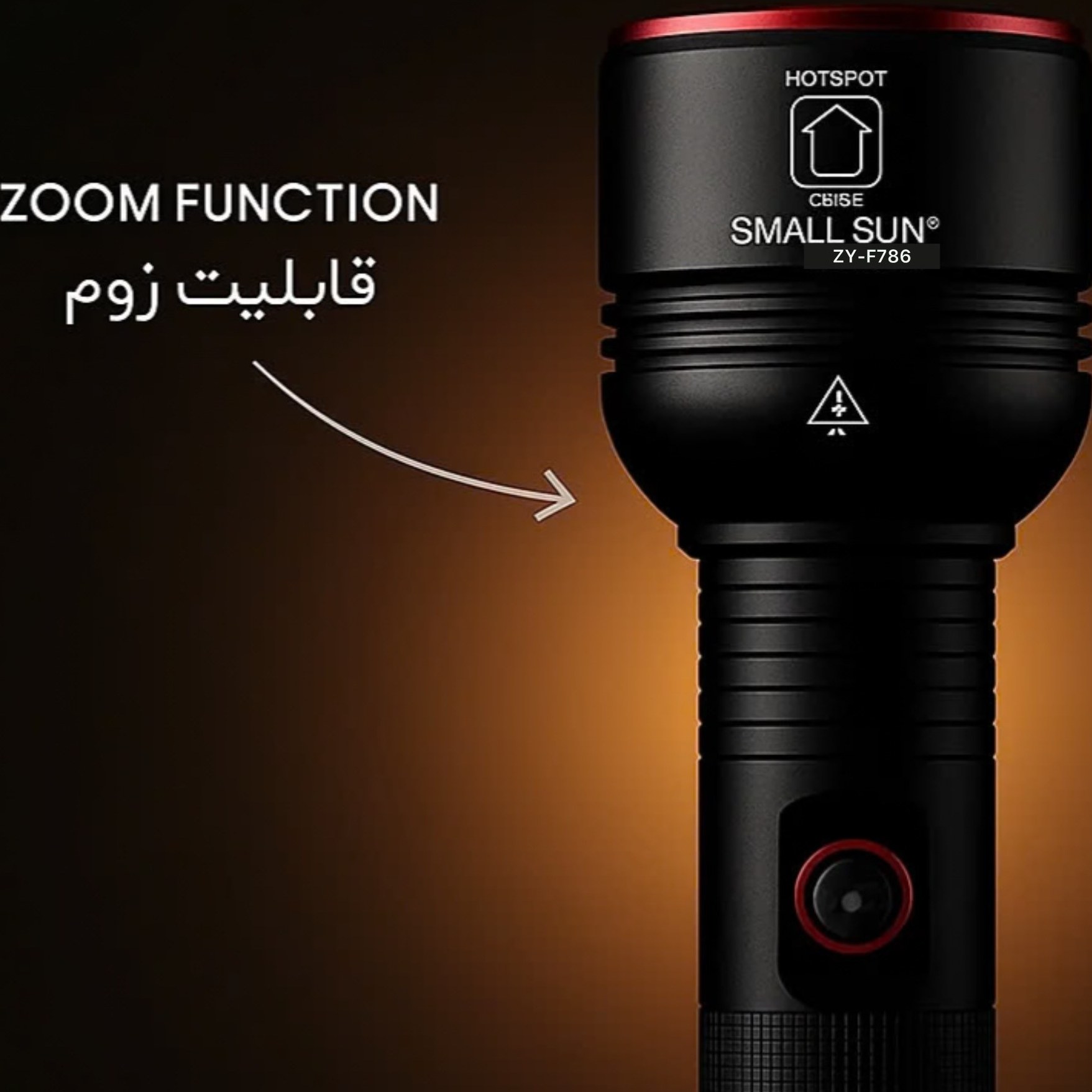 چراغ قوه زوم دار ، پاوربانک دار اسمال سان مدل ZY-T786 , با قدرت ۱۴۰۰ لومن و ۸۵۰ متر برد نوری