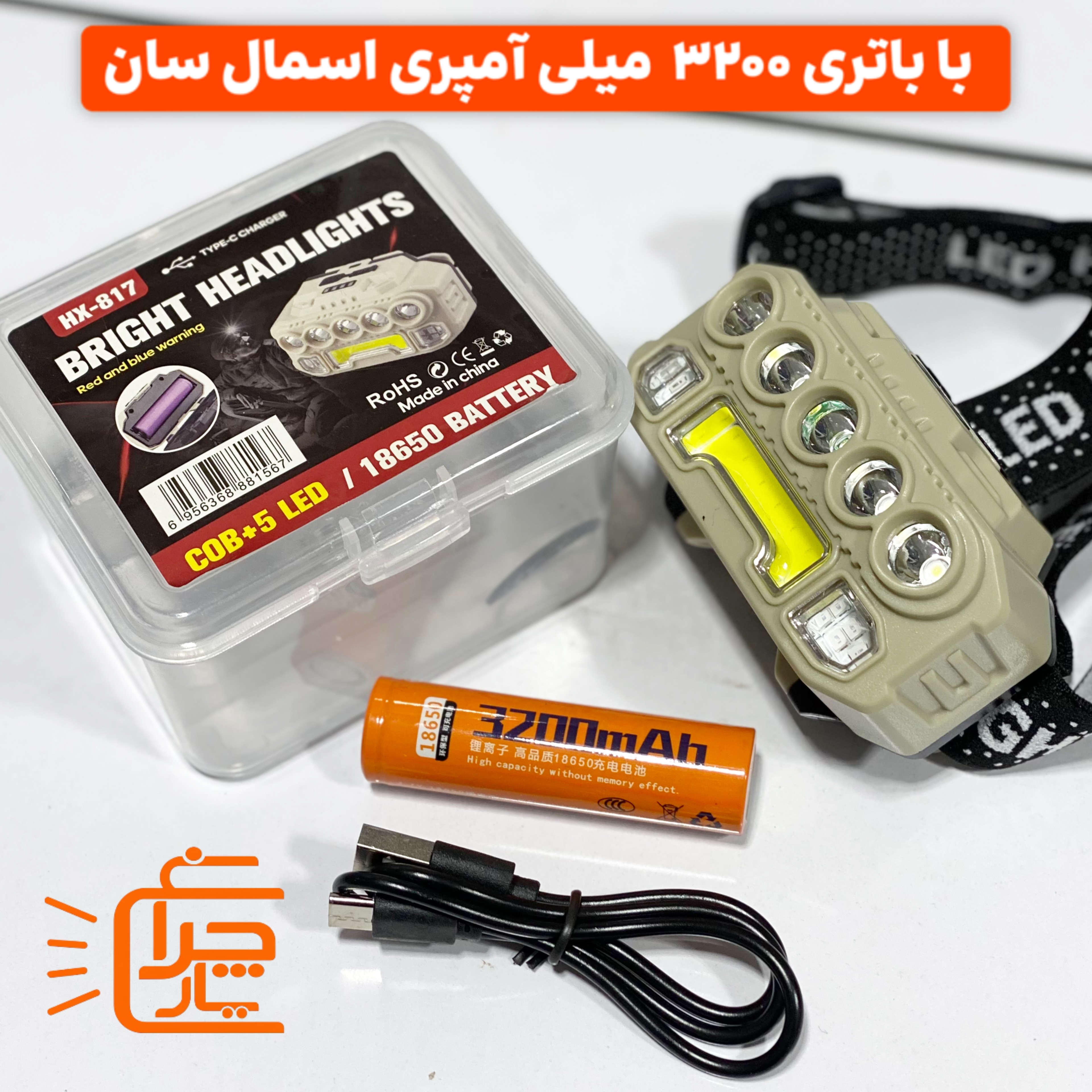 چراغ پیشانی | هدلایت تاکتیکال مدل HX-817 با باتری اسمال سان اصلی ، ۵ حالت نوری، ۸۰۰ لومن ۱۰۰ متر برد نور