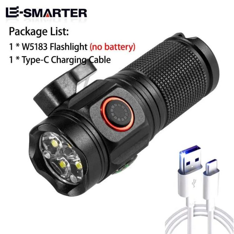 اگر به دنبال یک چراغ قوه کوچک، خوش دست، پرقدرت با طول عمر بالا هستید، پیشنهاد ما به شما چراغ قوه حرارتی مدل 5183 است. این چراغ قوه حرارتی دارای بدنهای از جنس آلیاژ آلومینیوم با باتری 18500 قابل شارژ است. چهار عدد لامپ ال ای دی P35 با طول عمر 100.000 ساعت برای این چراغ قوه کاربردی استفاده شده که نور 15W را تا فاصله 100 متری برای شما به ارمغان میآورد. 5 حالت نوری مختلف دارد که با فشردن طولانی دکمه حالت های آن تغییر میکند. و دارای یک باتری یک اضافی میباشد. این چراغ قوه توسط درگاه Type-C، در مدت زمان 1.5 ساعت بظور کامل شارژ میشود. کابل شارژ داخل پک این چراغ قوه وجود دارد اما باید که آداپتور شارژ برای چراغ قوه تهیه کنید. بدنه چراغ قوه کاملا ضدآب است و تا عمق یک متری در زیر آب میتوانید از آن استفاده کنید. یک گیره در بالای چراغ قوه وجود دارد که میتوانید به قسمت نقاب کلاه کپ یا کنار جیب شلوار و لباس خود متصل و استفاده کنید وزن چراغ قوه حرارتی اسمال سان مدل W5183 تنها 97 گرم با طول 9 سانتی متر، سر چراغ 3 سانتی متر و انتهای چراغ قوه 3 سانتی متر است، و دارای مگنت آهنربایی و کاتر نیر میباشد که گزینه مناسبی برای شفرهای کوهنوردی و کمپینگ است