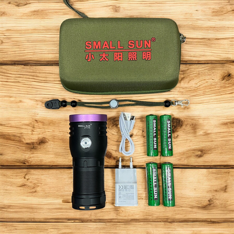 چراغ قوه UV قوی اسمال سان (Small Sun) مدل ZY-H4 | 80 وات | ماوراء بنفش 365 نانومتری | کارشناسی رنگ خودرو، پول و سنگ شناسی