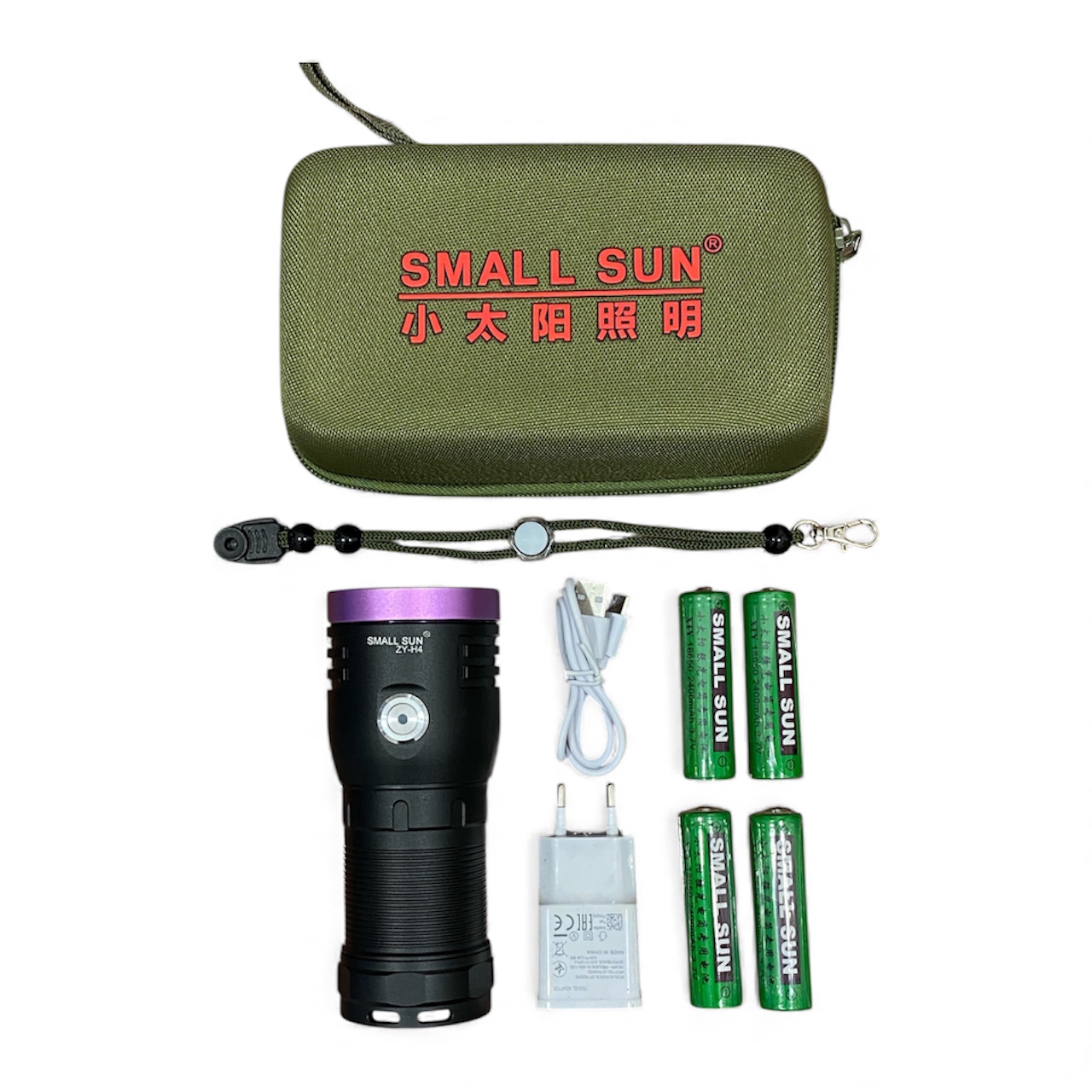 چراغ قوه UV قوی اسمال سان (Small Sun) مدل ZY-H4 | 80 وات | ماوراء بنفش 365 نانومتری | کارشناسی رنگ خودرو، پول و سنگ شناسی