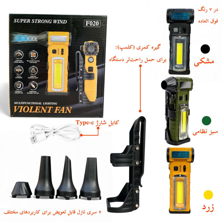 جت فن شارژی چندمنظوره Violent Fan مدل F020 – موتور براشلس ۱۲۰۰۰۰RPM و باتری ۱۰۰۰۰mAh