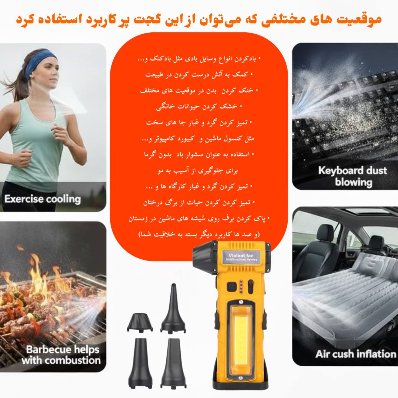 جت فن شارژی چندمنظوره Violent Fan مدل F020 – موتور براشلس ۱۲۰۰۰۰RPM و باتری ۱۰۰۰۰mAh
