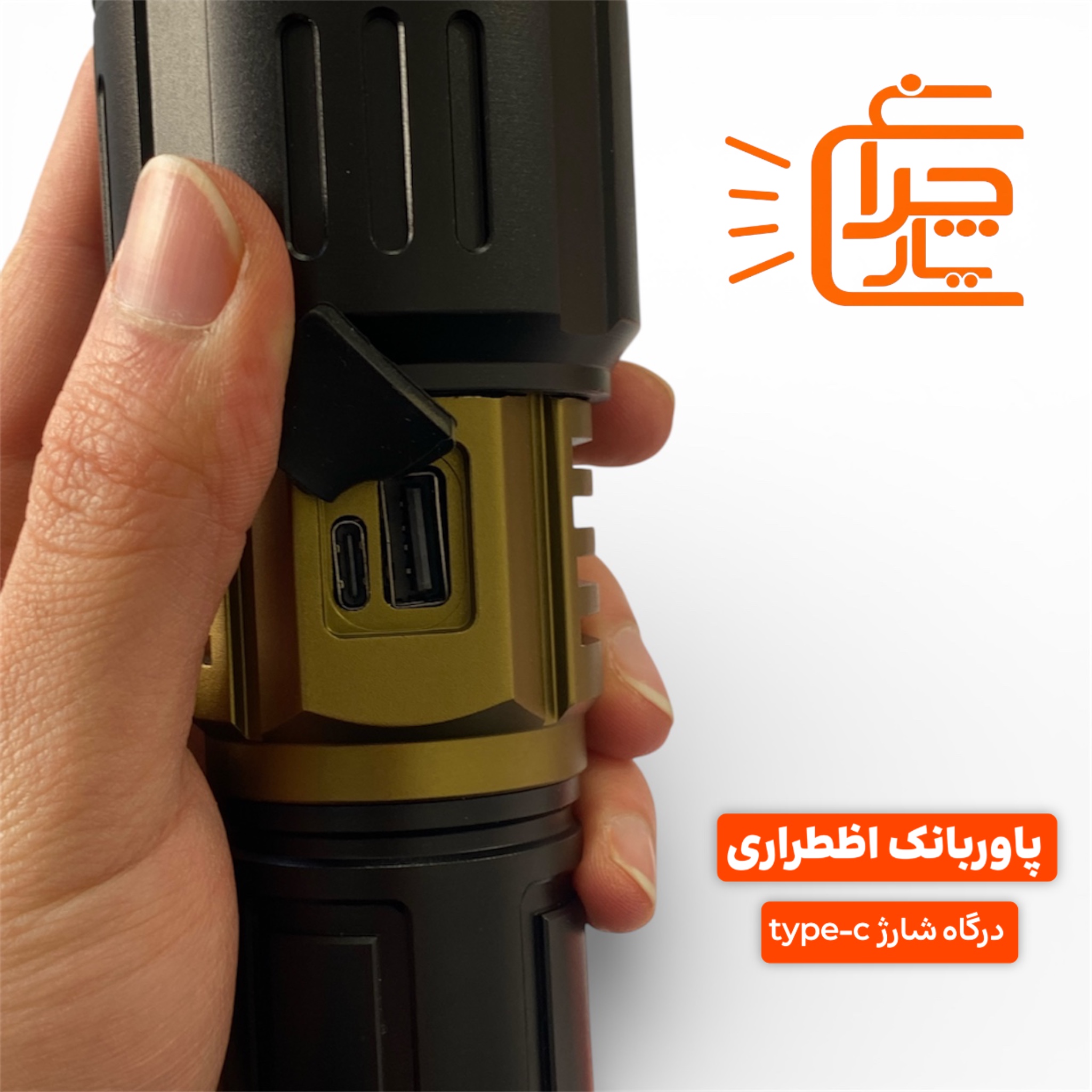 اسمال سان در مدل T305 به فکر دنیای مدرن بوده است. تجهیز این دستگاه به پورت Type-C یعنی شما میتوانید با همان کابل شارژر موبایلتان، چراغقوه را شارژ کنید. اما جذابیت اصلی، خروجی USB آن است. در مواقع اضطراری که شارژ گوشی شما تمام شده، T305 مثل یک پاوربانک قدرتمند به داد شما میرسد.