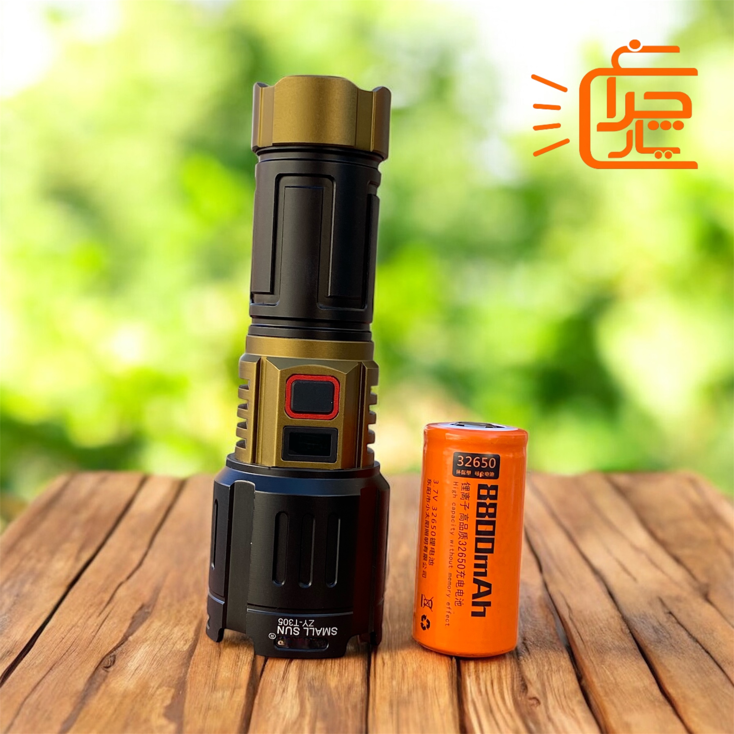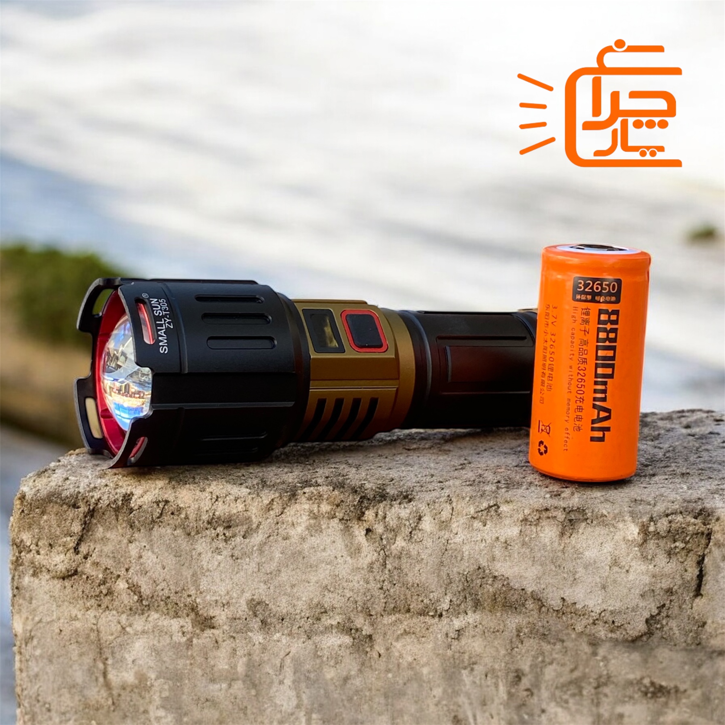 یکی از نقاط قوت این مدل، استفاده از باتری لیتیومی 32650 است. این باتری که با روکش نارنجی در پک اصلی قرار دارد، ظرفیت بسیار بالاتری نسبت به باتریهای معمولی دارد. ظرفیت 8800mAh درج شده روی آن، به شما این اطمینان را میدهد که در کمپینگهای طولانی یا شیفتهای نگهبانی، نگران تمام شدن ناگهانی نور نخواهید بود.