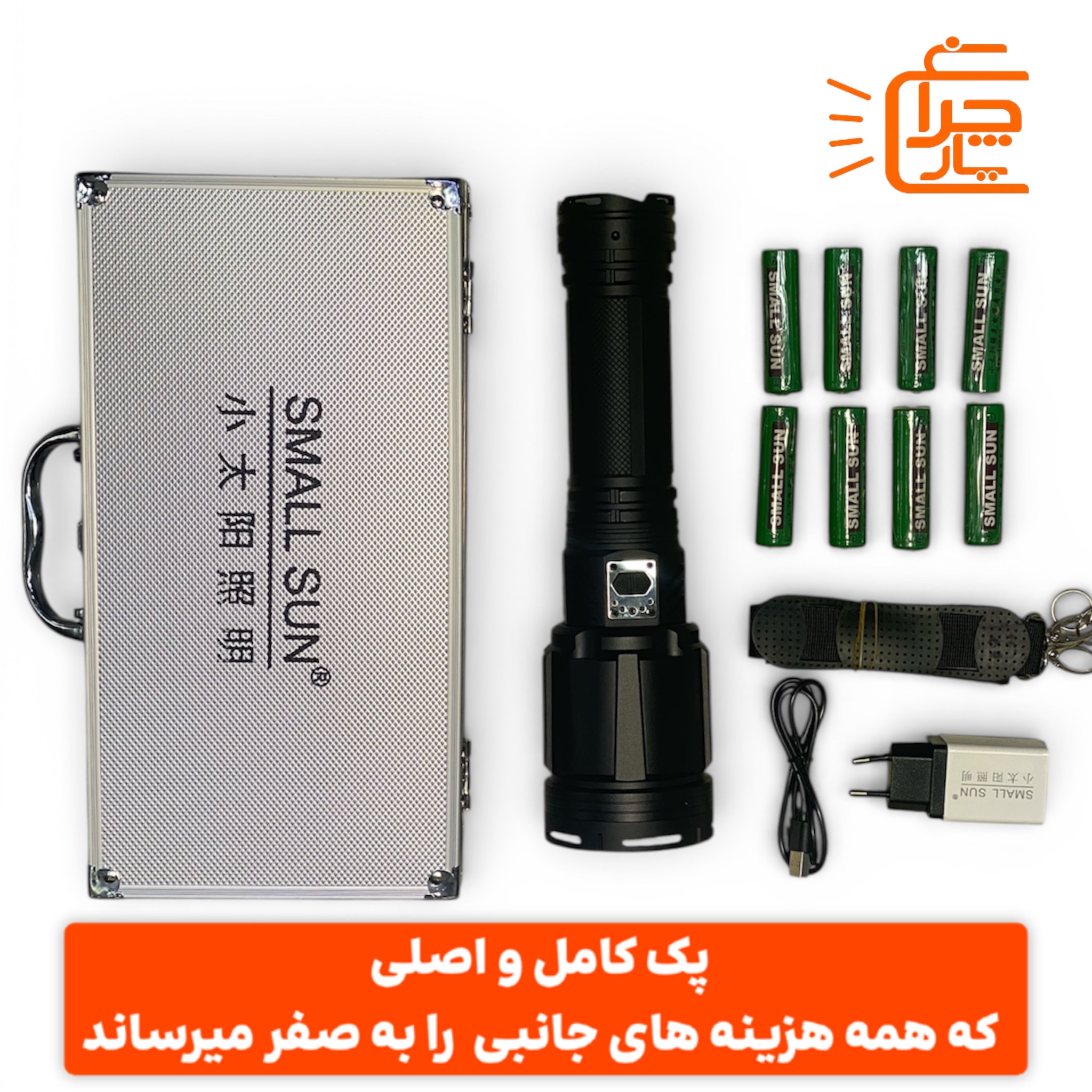 چراغ قوه پلیسی اسمال سان ZY-G999 اصلی | برد 1/2 کیلومتر ، 10,000 لومن با پک کامل و اصلی و چمدان فلزی