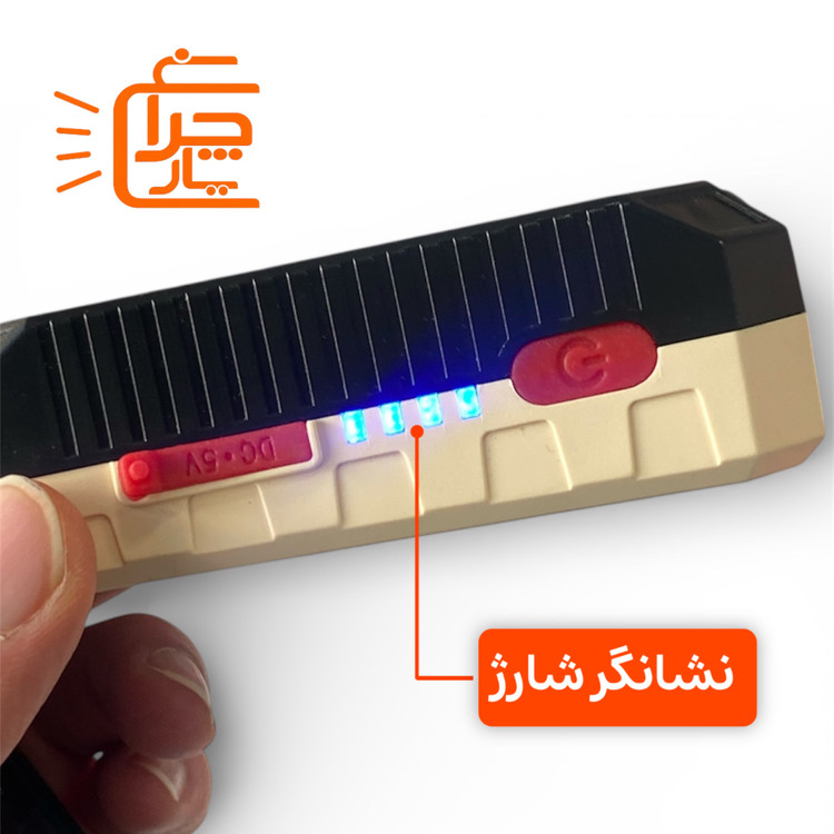 چراغ شارژی ال ای دی مدل W599B چراغ شارژی ال ای دی مدل W599B که به آن چراغ کار نیز می گویند، دارای جنس بدنه ایی از نوع پلاستیک فشرده بوده و همین امر باعث شده است تا در برابر ضربه و آسیب مقاوم باشد. چراغ شارژی ال ای دی مدل W599B در واقع از دو لامپ تشکیل شده است. یک لامپ در جلو به عنوان چراغ قوه و دارای نوردهی عالی و یک لامپ ال ای دی بسیار شفاف بر روی بدنه چراغ که دارای سه حالت نوردهی قوی،ضعیف و چشمک زن قرمز و آبی می باشد که از حالت چشمک زن آن بیشتر برای مواقع اضطراری و خطر استفاده می شود، همچنین دارای نشانگر شارژ می باشد که شما را از پر و یا خالی بودن باتری با خبر می کند. چراغ شارژی ال ای دی مدل W599B از لحاظ برد نور نیز در رده بالایی قرار دارد به طوریکه برد نور آن 150 متر می باشد. چراغ شارژی ال ای دی مدل W599B دارای یک پایه محکم است که می توان به شکل رومیزی از آن استفاده کردو قابلیت باز شدن تا زاویه 180 درجه را نیزدارد، همچنین دارای مگنت آهنربایی برای نصب بر روی سطوح فلزی می باشد و جدا از این ها هم دارای حلقه آویز نیز می باشد. در واقع چراغ شارژی ال ای دی مدل W599B بهترین وسیله برای صنعتگران، تعمیرگاه ها و.. می باشد و با حلقه ایی که دارد به راحتی می توانند بروی کمربند نصب کنند و همیشه قابل دسترس باشد. منبع تغذیه منبع تغذیه چراغ شارژی ال ای دی مدل W599B توسط کابل یو اس بی صورت می گیرد
