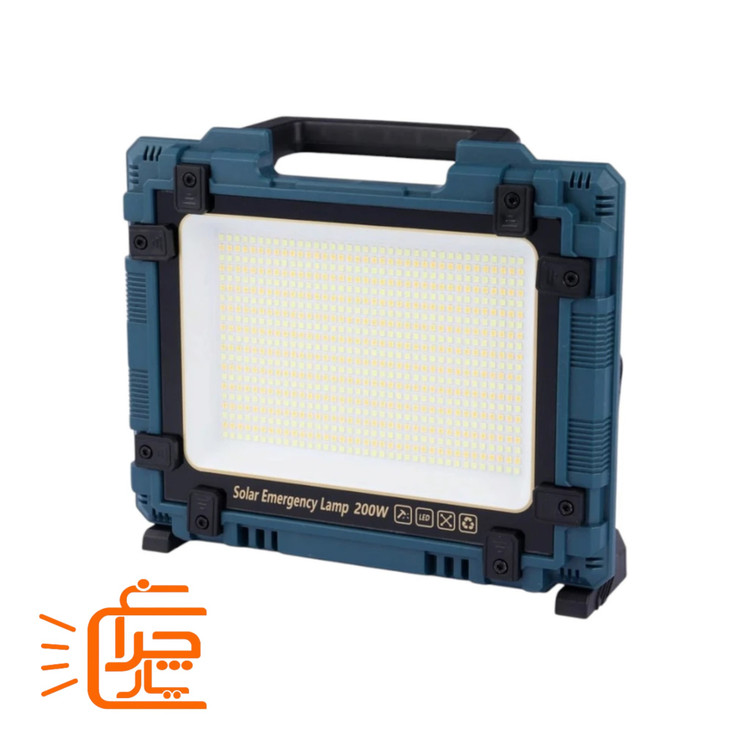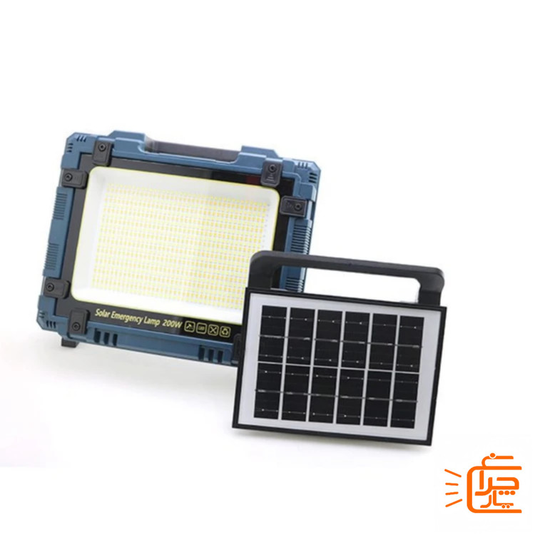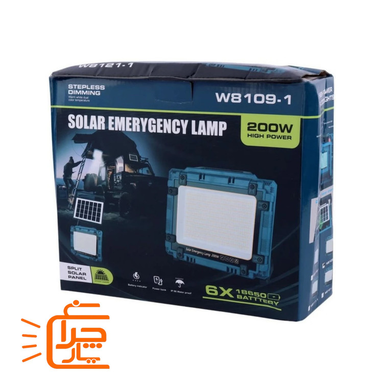 پروژکتور خورشیدی شارژی و پاوربانک 200 وات مدل W8121 پرنور، قابل حمل با پنل جداشونده مناسب شرایط بحرانی و اضطراری ، کمپینگ و ماهیگیری