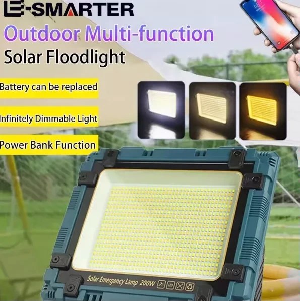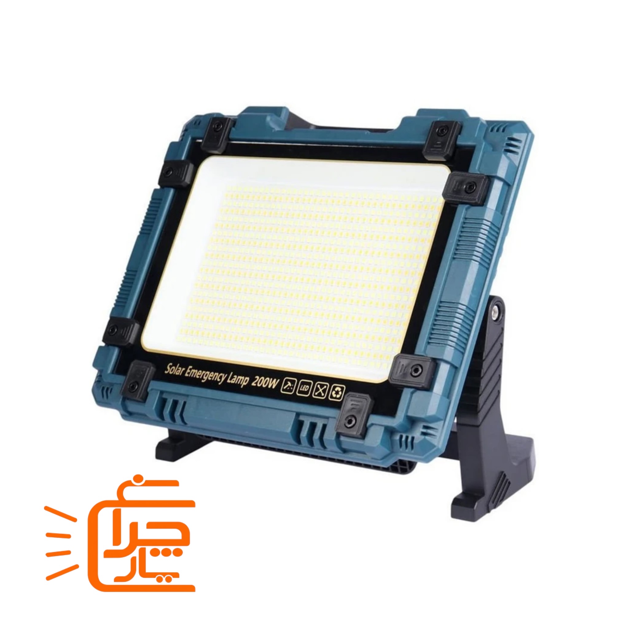 پروژکتور خورشیدی شارژی و پاوربانک 200 وات مدل W8121 پرنور، قابل حمل با پنل جداشونده مناسب شرایط بحرانی و اضطراری ، کمپینگ و ماهیگیری